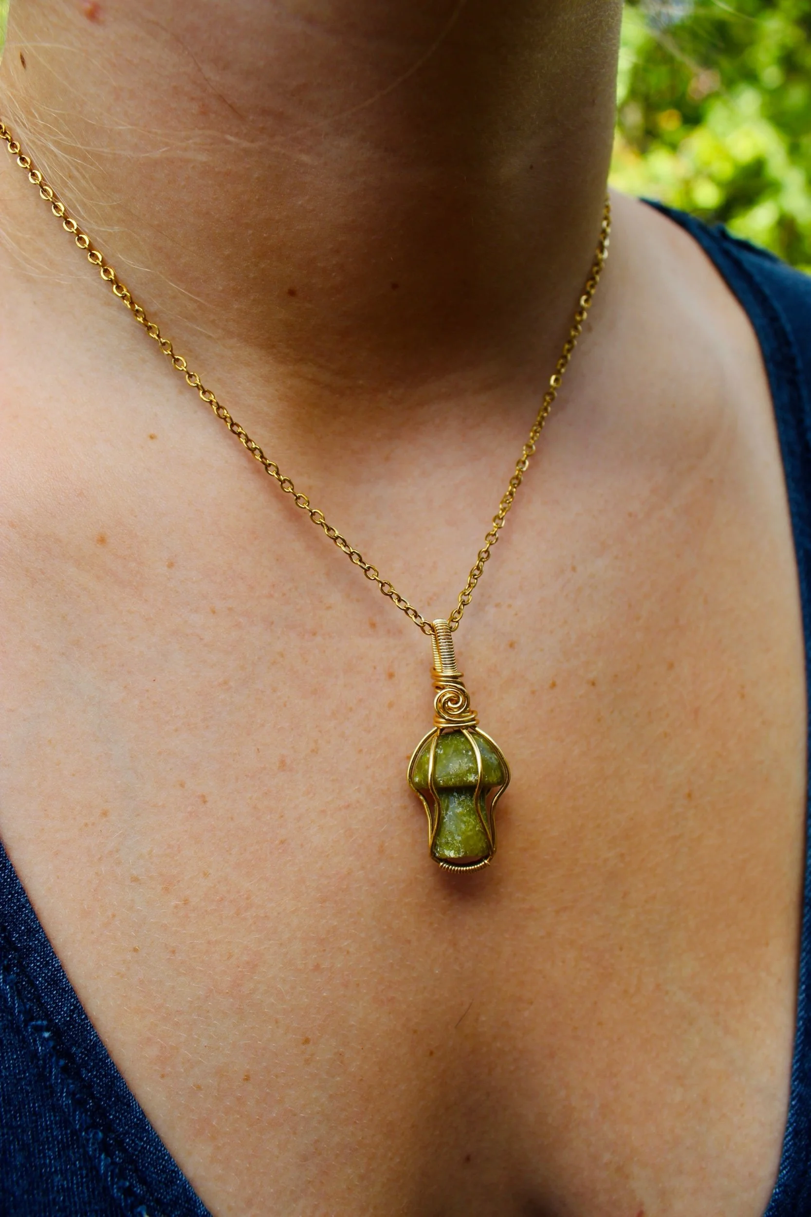 Bright and energizing, this copper mushroom pendant showcases calcite, a stone of creativity, motivation, and flow. The warm tones of copper enhance its uplifting energy, sparking inspiration wherever you go.