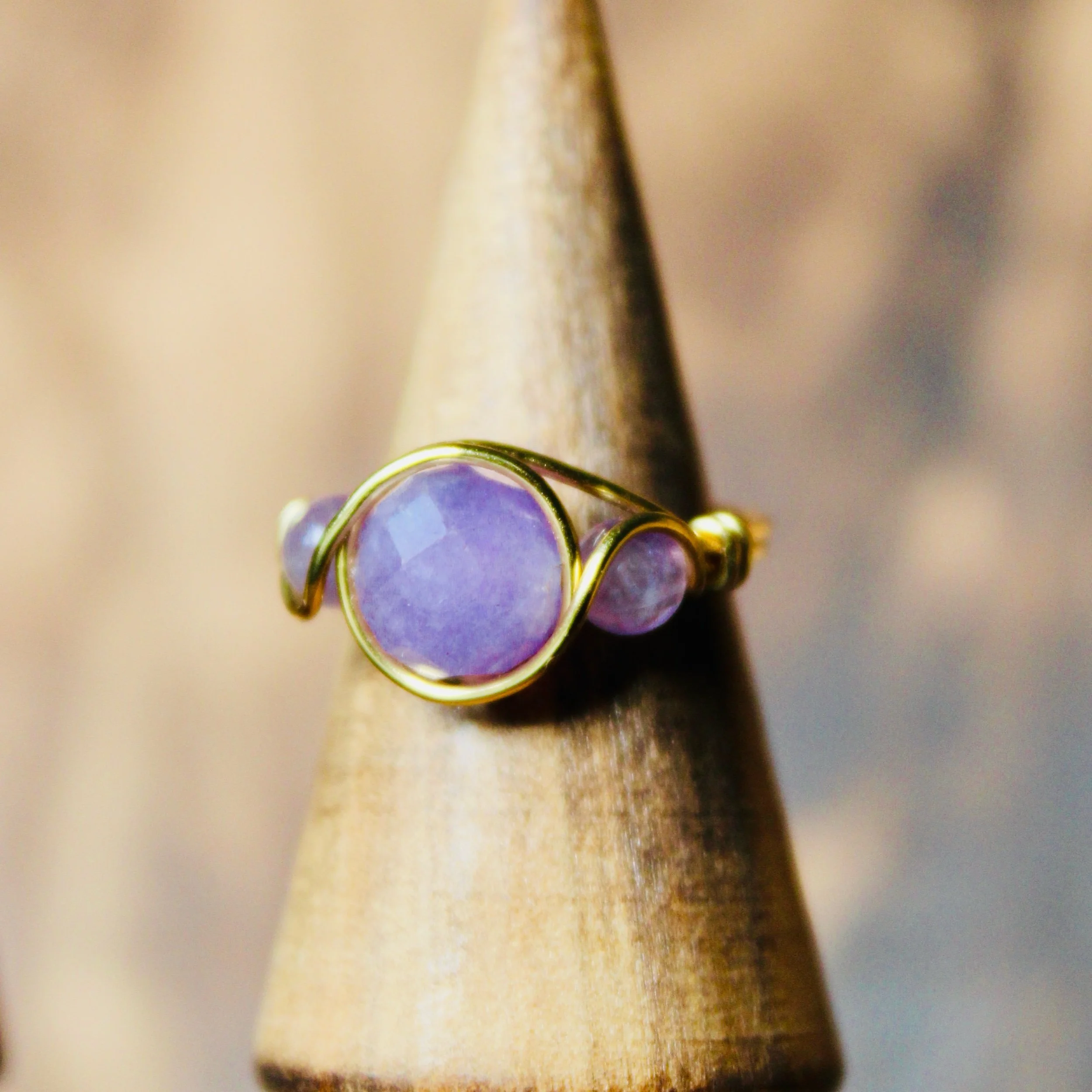 Milky white tree agate, traced with soft green inclusions, sits at the center with two tiger's eye stones flanking each side. The contrast between the quiet, nature-like patterning of the tree agate and the warm shimmer of tiger's eye makes this one of the more unique combinations in the drop. Handmade to order in your choice of metal and ring size.